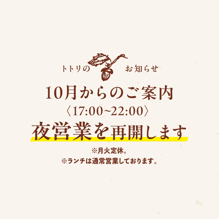🕓 夜 17:00〜22:00(通常営業&テイクアウト対応)