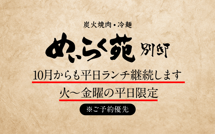 めいらく苑別邸10月からも平日ランチ継続決定!